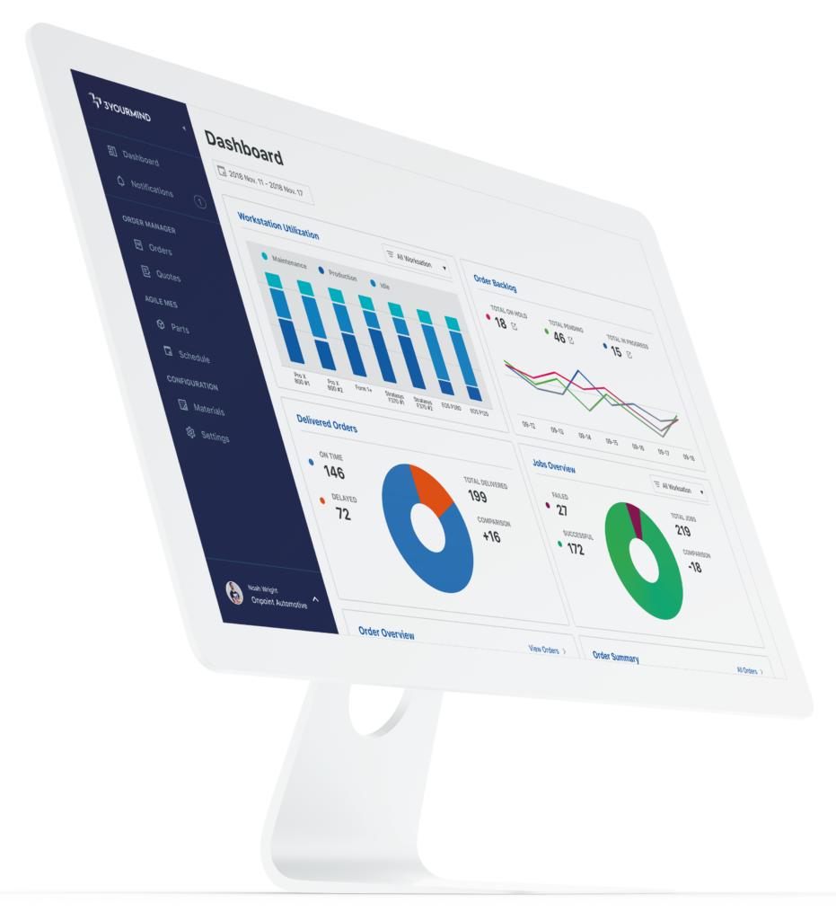 データは製造現場の活力源である。3YOURMINDのソフトウェアソリューションは、情報の収集、追跡、分析をシームレスに行うことができ、アディティブマニュファクチャリングの導入をシンプルかつ効率化するための道を開くことができる。部品の設計から後処理までの完全なデータの連続性は、これまでにないフィードバックと知識の伝達能力をもたらす。データの透明性は、複数の部門、施設、および管理レベル間のコミュニケーションの改善につながる。