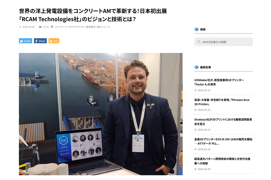 世界の洋上発電設備をコンクリートAMで革新する!日本初出展「RCAM Technologies社」のビジョンと技術とは?